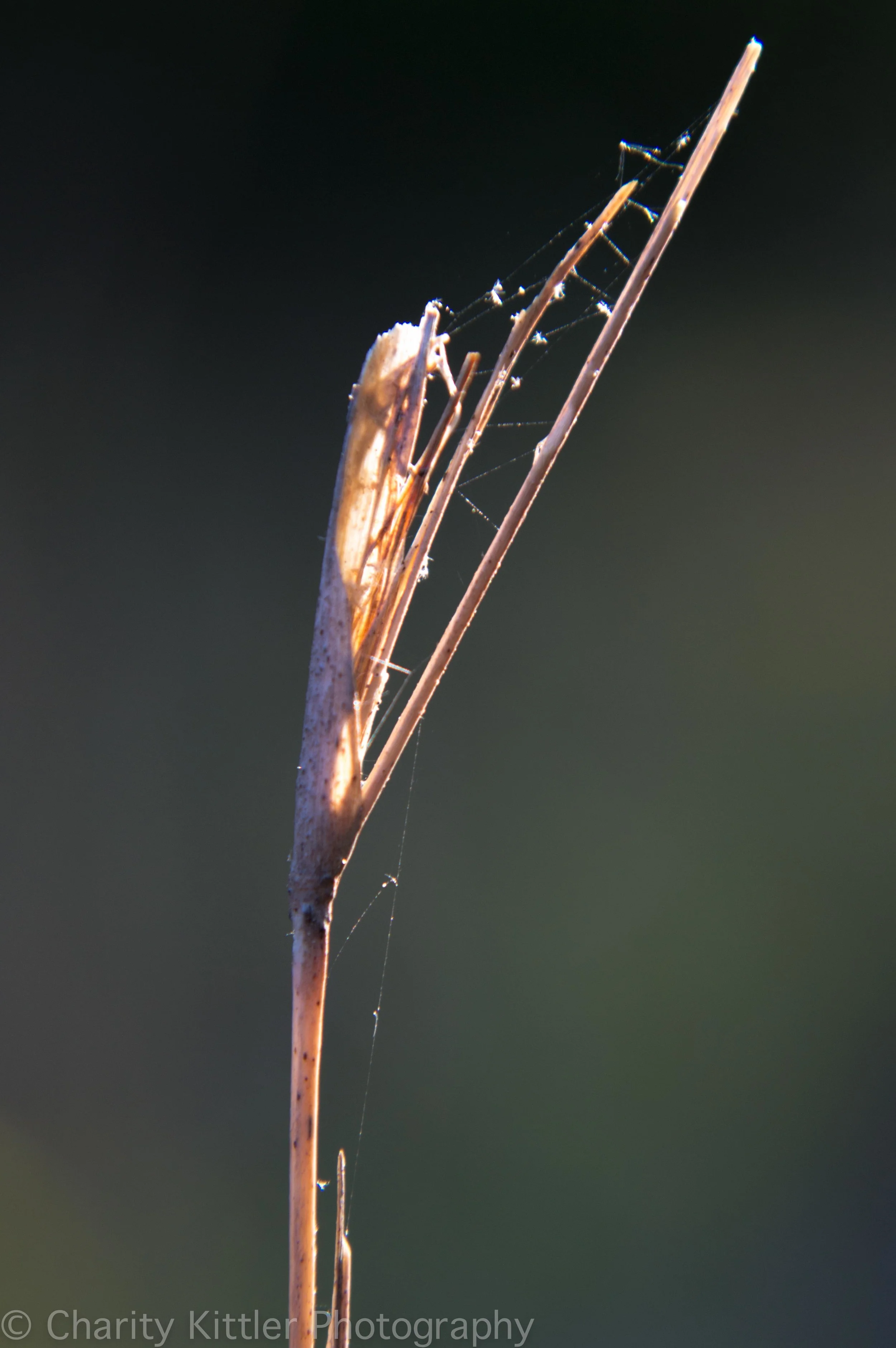 This leaf interests me. It's obvious, I spent nearly a week now showing you pictures of mostly this leaf. (And there's one more day's worth to go --) Today's series is a different perspective, though. It shows you the leaf's attachment to the branch. The wind blows, the leaf goes horizontal stretching away from the branch, as if trying with all its might to get away and fly free to parts unknown. But the branch isn't the one holding it back.