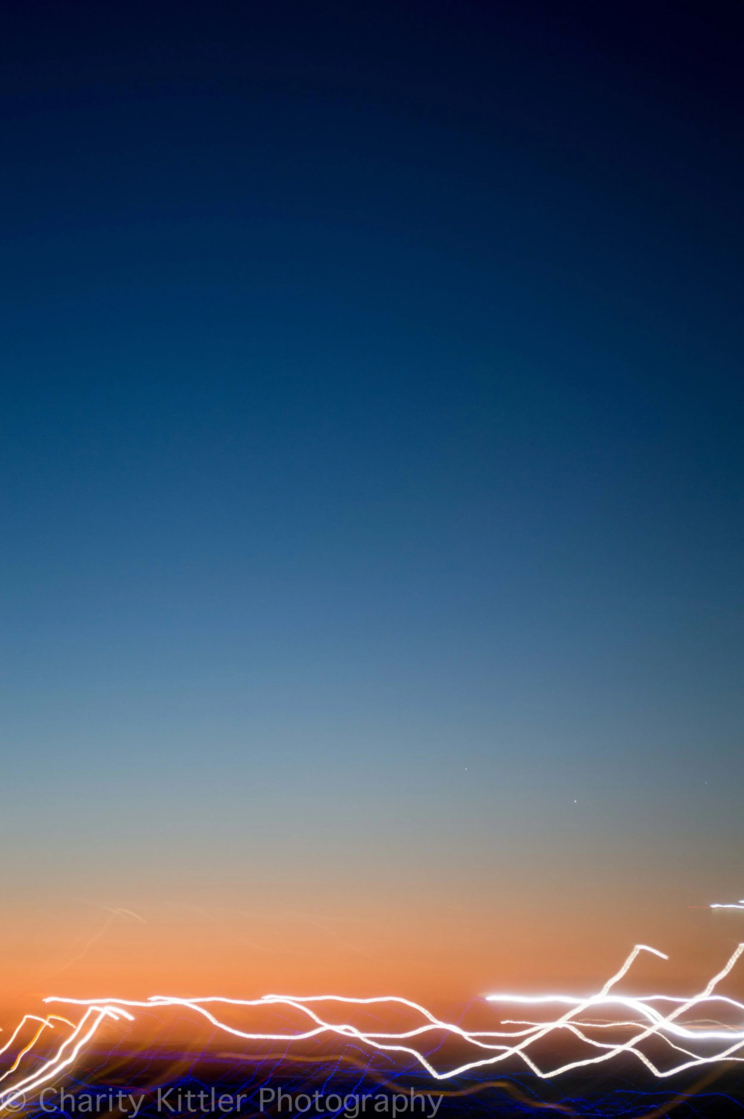 I love the rainbow bokeh in these images, the unfocused points of light that make a twilight image feel festive and full of wonder. There are two extra special images I want to call out: The first image is actually two, layered on top of each other. The last image, as with much of my work, blurs the light. I'm so pleased that the blurs are completely straight. Trust me, it took a lot of wavy shots to get this one :)