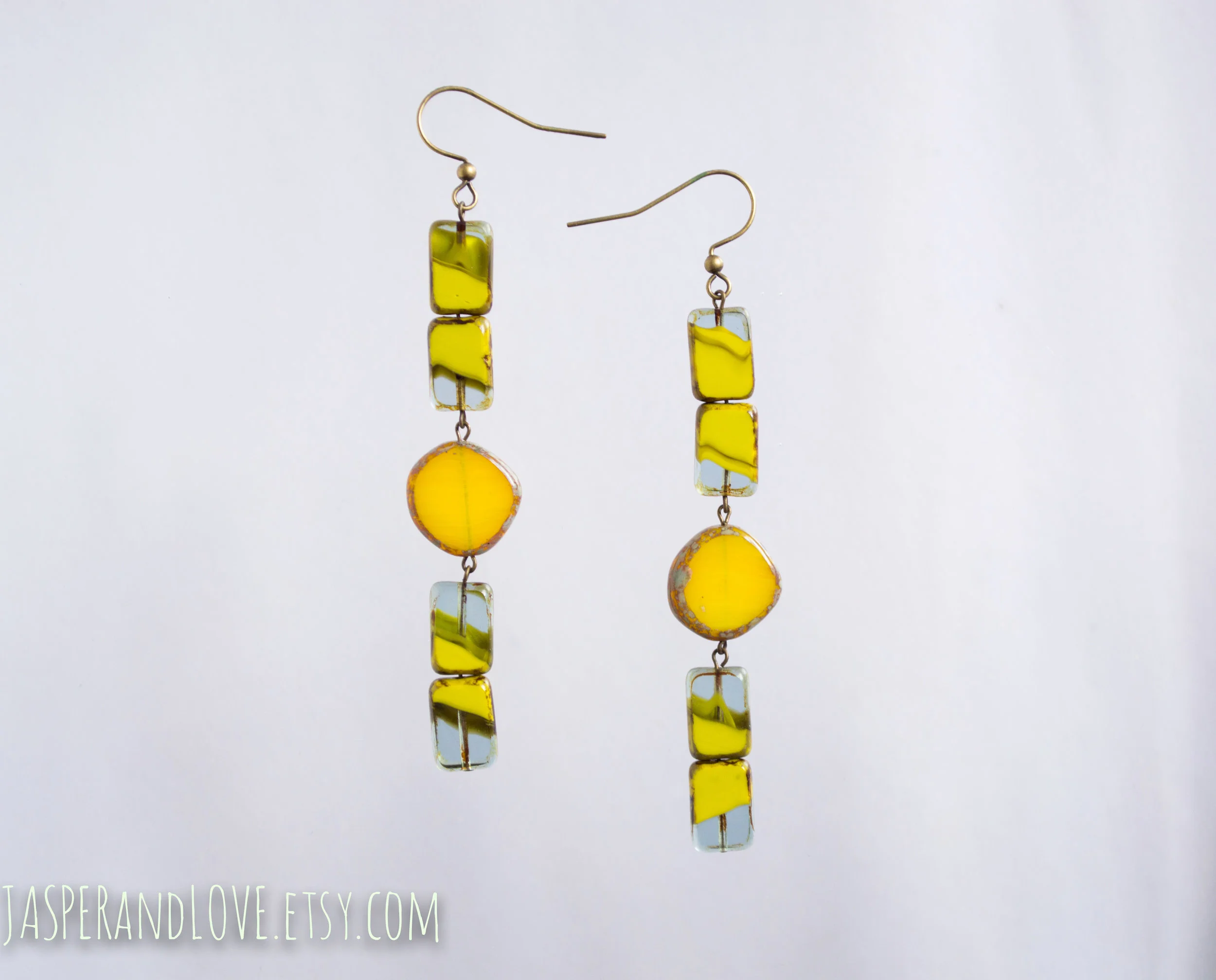 I'm not sure how to shoot Shida to capture what I love about them, without hiring a model (seriously considering this...). The best of boho SoCal chic, with the push/pull of warm ochres and cool sage greens. Gemstones top to bottom? Nope, you'll find four glass beads included :)