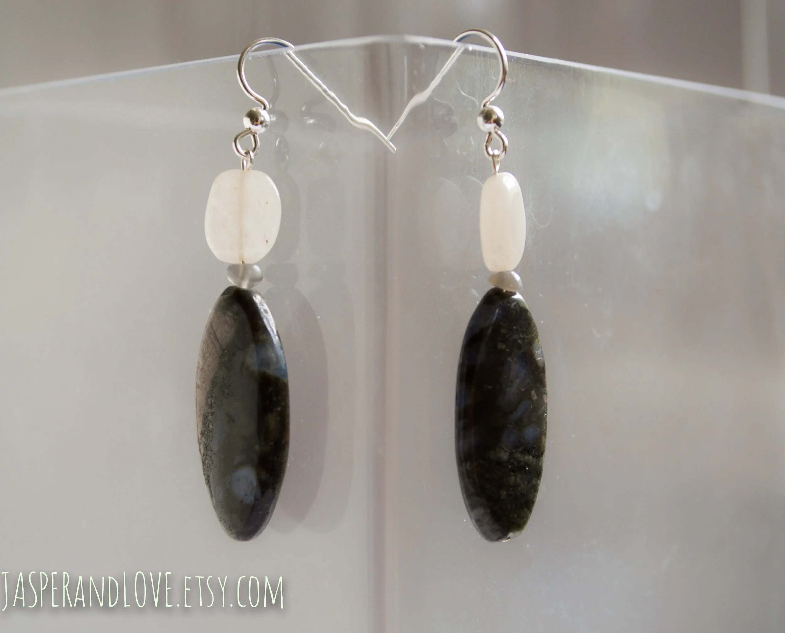 Sterling silver, quartz and riolite earrings