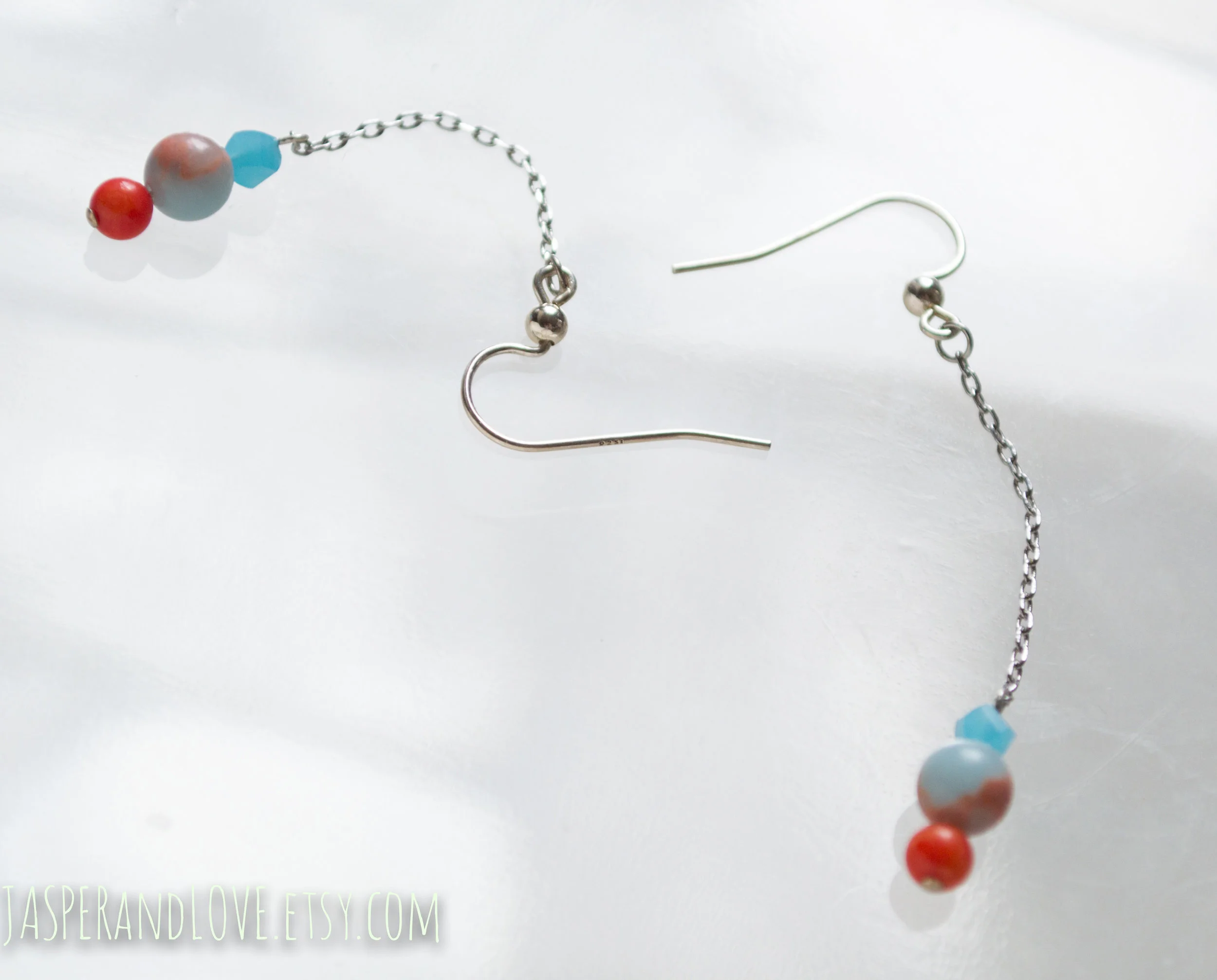Sterling silver, jasper and coral earrings